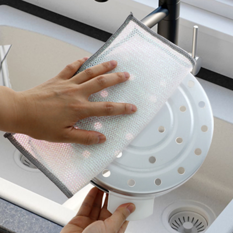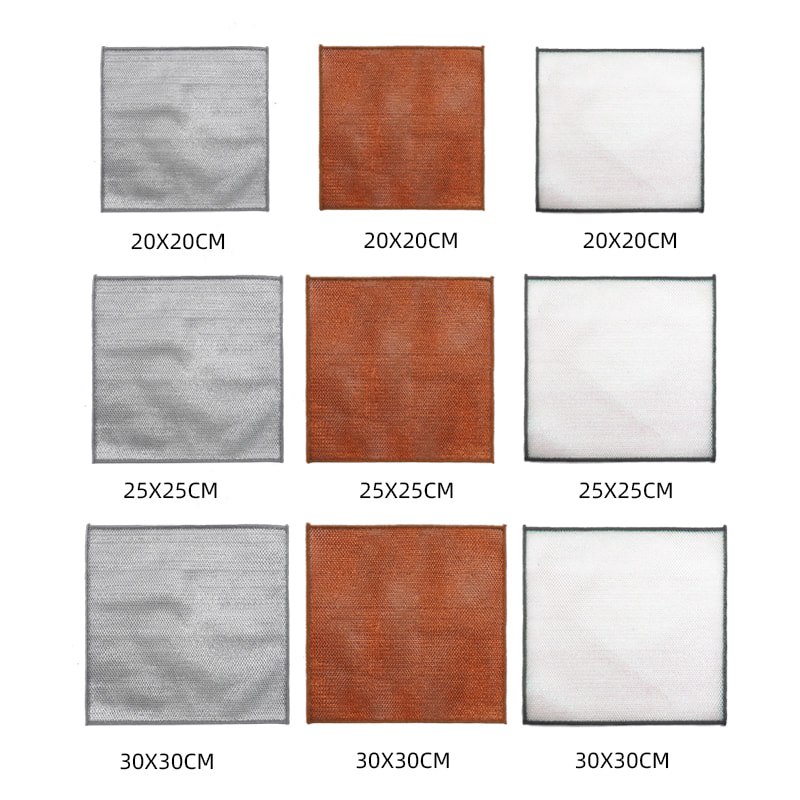 Oboustranná stříbrná drátěná utěrka, vyrobená z bronzového hedvábí, je velmi drahá; Žádný povlak, žádný prášek, žádné vyblednutí; Žádný olej, žádný olej, silné škrábání, ale žádné poškození nádobí. Vyrobeno z barevného hedvábí, je mastné a nelepivé, s vysokou hodnotou vzhledu; Žádný povlak, žádná kapka prášku, žádné vyblednutí barvy; Silné škrábání, ale žádné poškození nádobí.